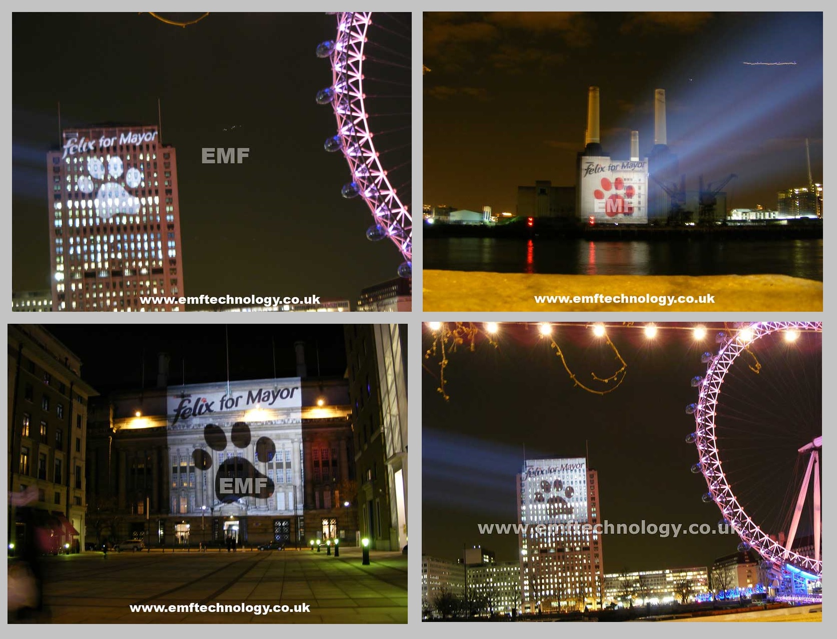 EMF assisted the Ministry of Fun’s marketing projection advertising campaign with the projection of paw prints in six cities across the UK: