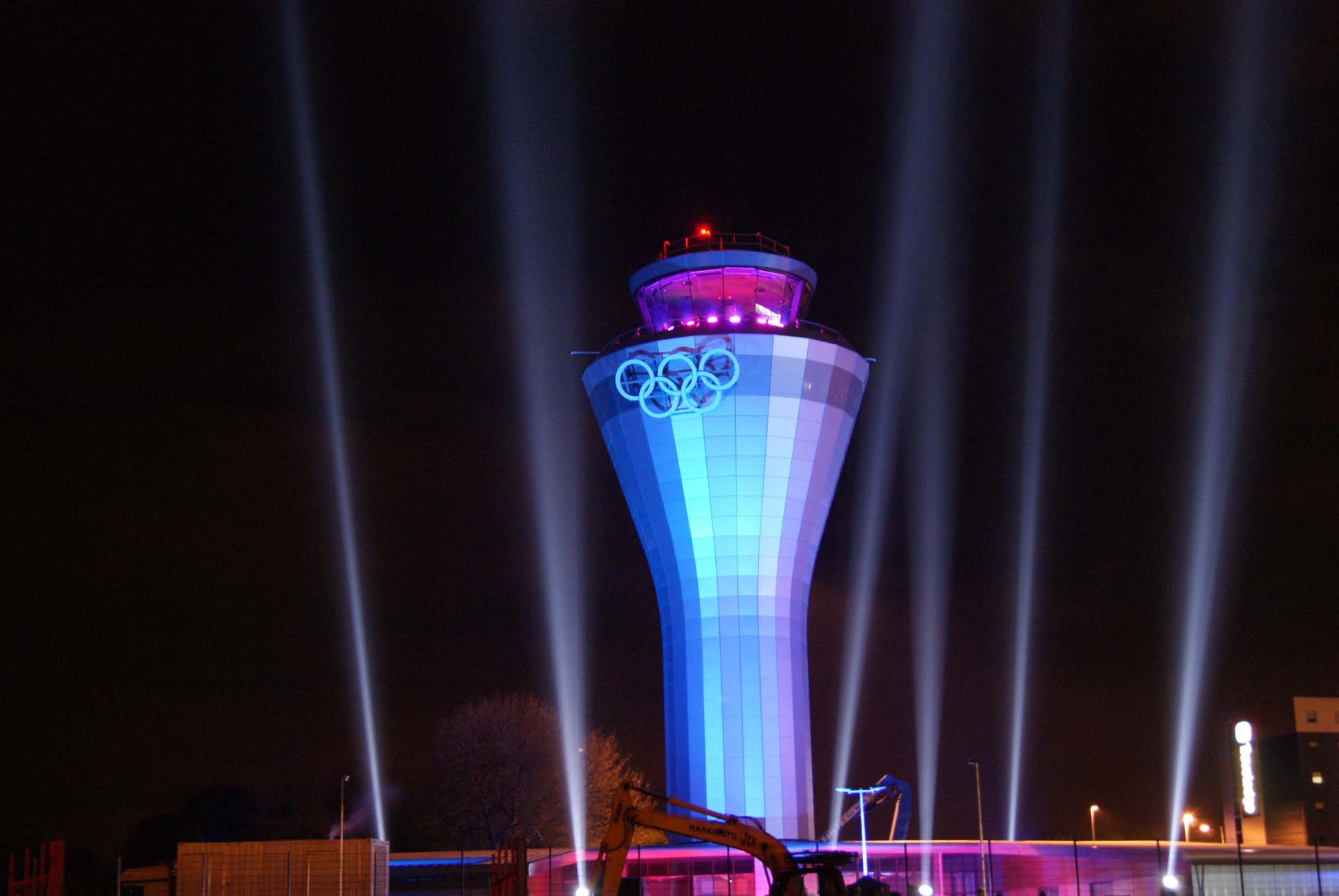 Birmingham Airport has unveiled the Olympic Rings on its Air Traffic Control Tower to celebrate the London 2012 Games.